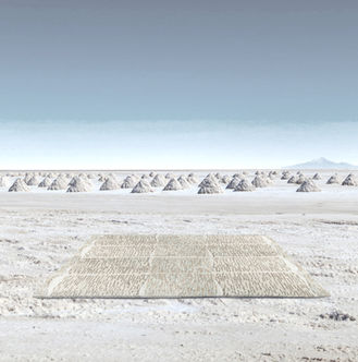 Les textures, les couleurs, les motifs du minéral se déclinent sous toutes ces formes pour inspirer des structures et des dessins de tapis qu'il s'agisse de la porcelaine brillante, du plâtre gratté, de l'argile blanchi, du galet lissé par l'eau, des veinures du marbre, des aspérités d'un coquillage ou encore de la surface rocheuse de la lune.